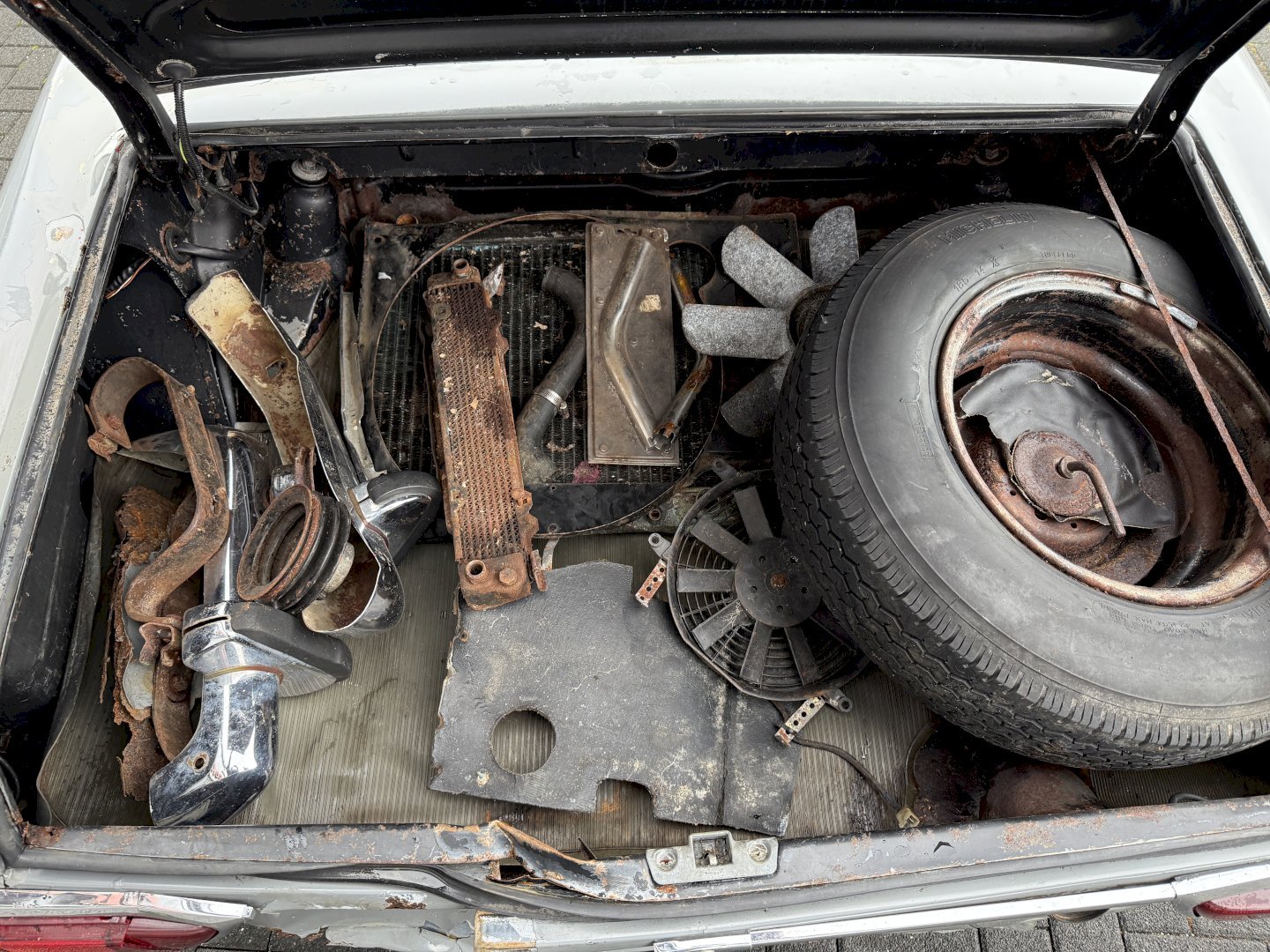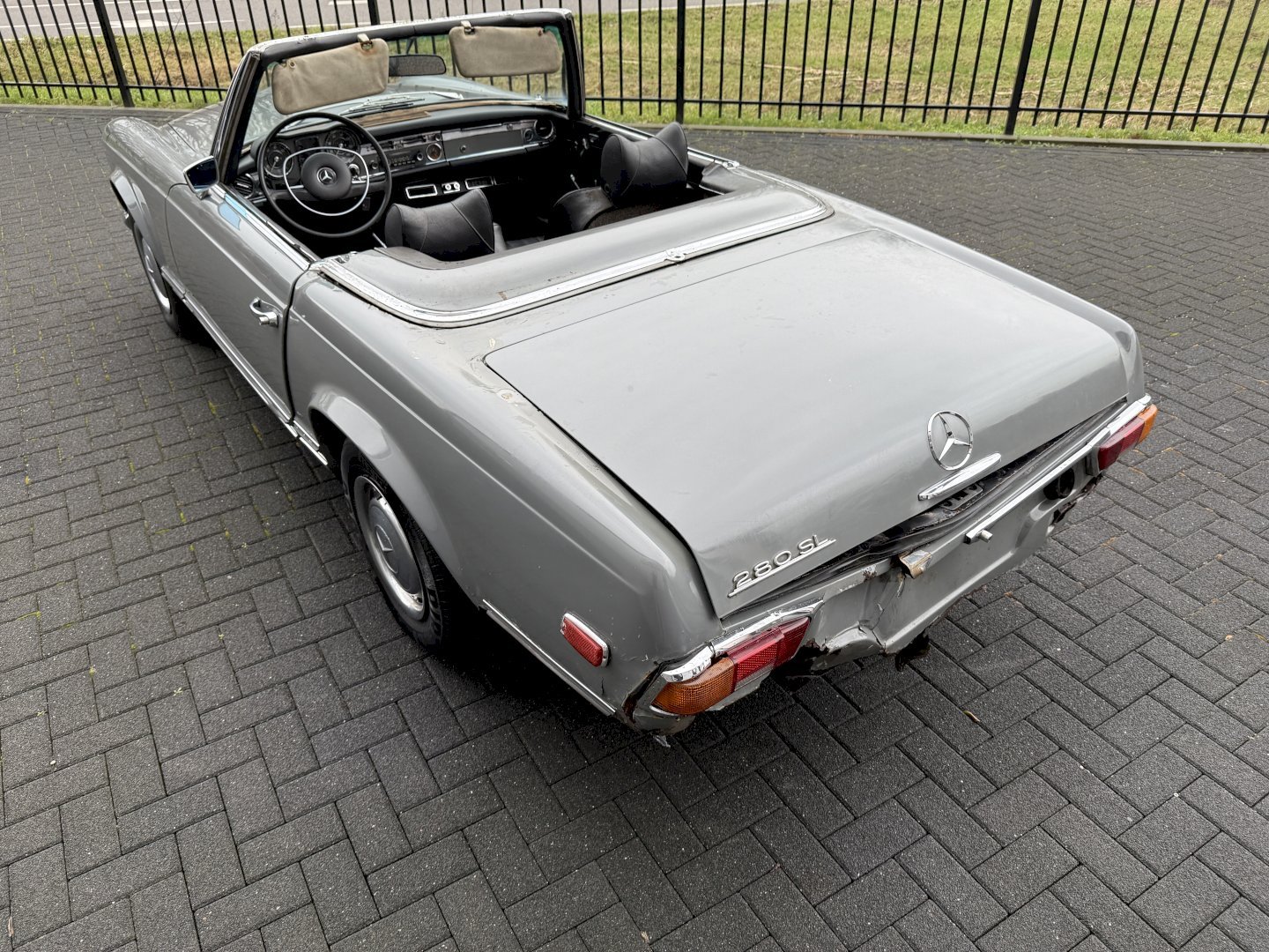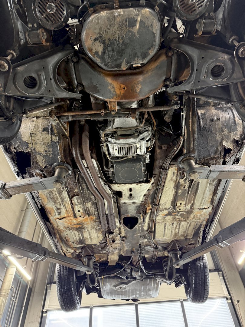 Matching Nummer und laut Werk die richtige Farben, es hat Hardtop und Verdeck, Unterboden zeigt Roststellen und hat leichter Heckschaden aber ist vollständig.