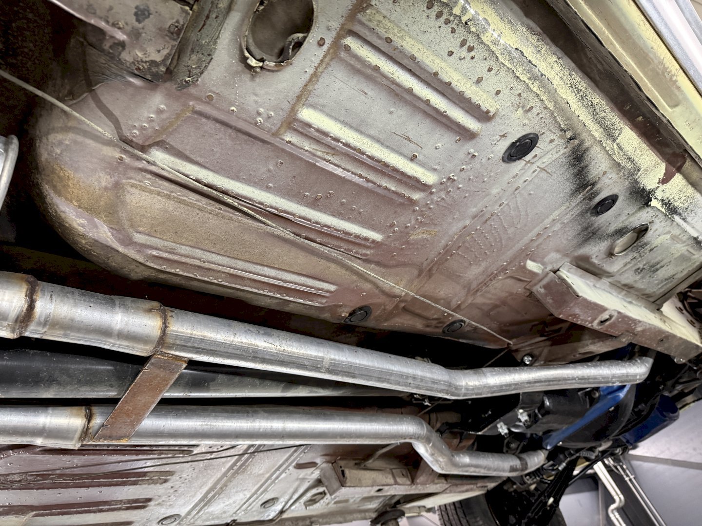 This Mustang is particularly notable for its exceptional originality. It retains very original sheet metal, including the quarter panels and aprons, as well as the full original floors. The underside still shows original red oxide primer with factory overspray, a rare and highly desirable detail that speaks to the authenticity of the car.
