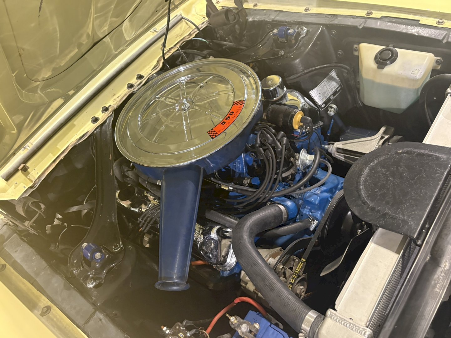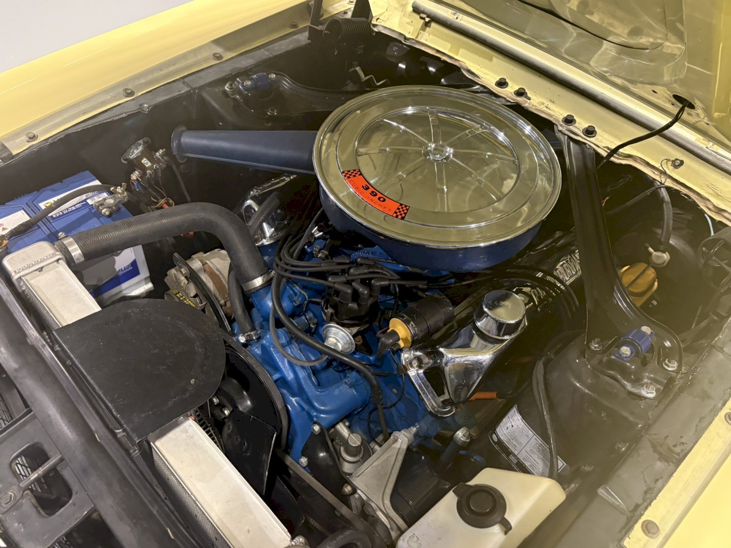 This example is equipped with the highly desirable factory 4-speed manual transmission, paired with the legendary 390 cubic inch FE V8, 325HP delivering strong torque and thrilling performance. The engine bay is complemented by a large radiator, ensuring proper cooling and reliable driving even under spirited use.