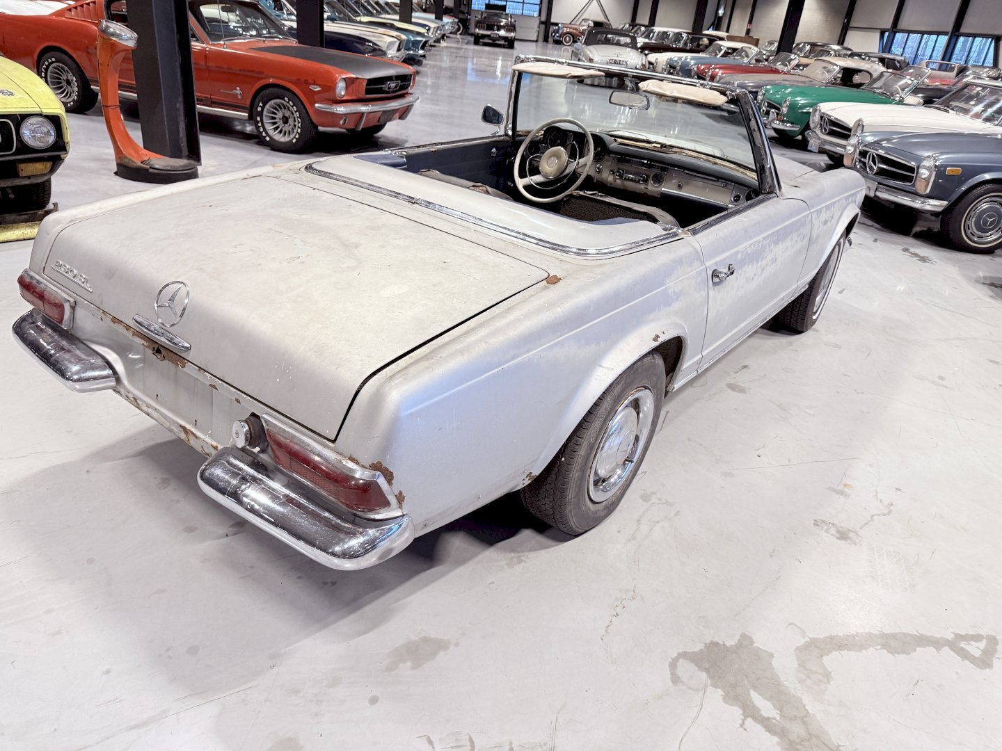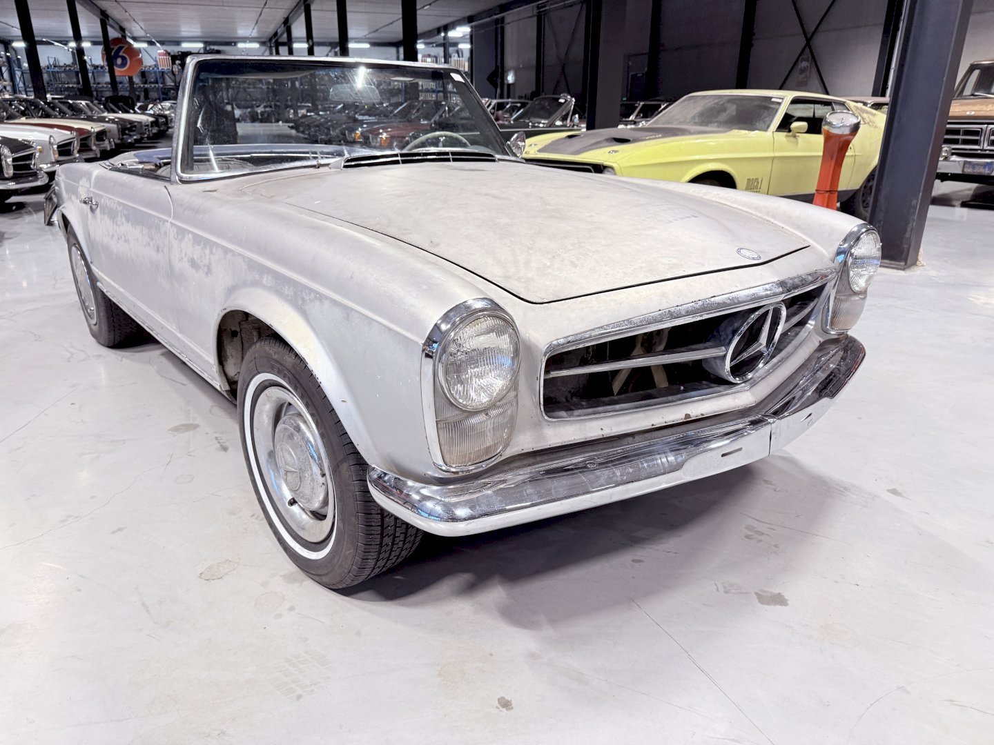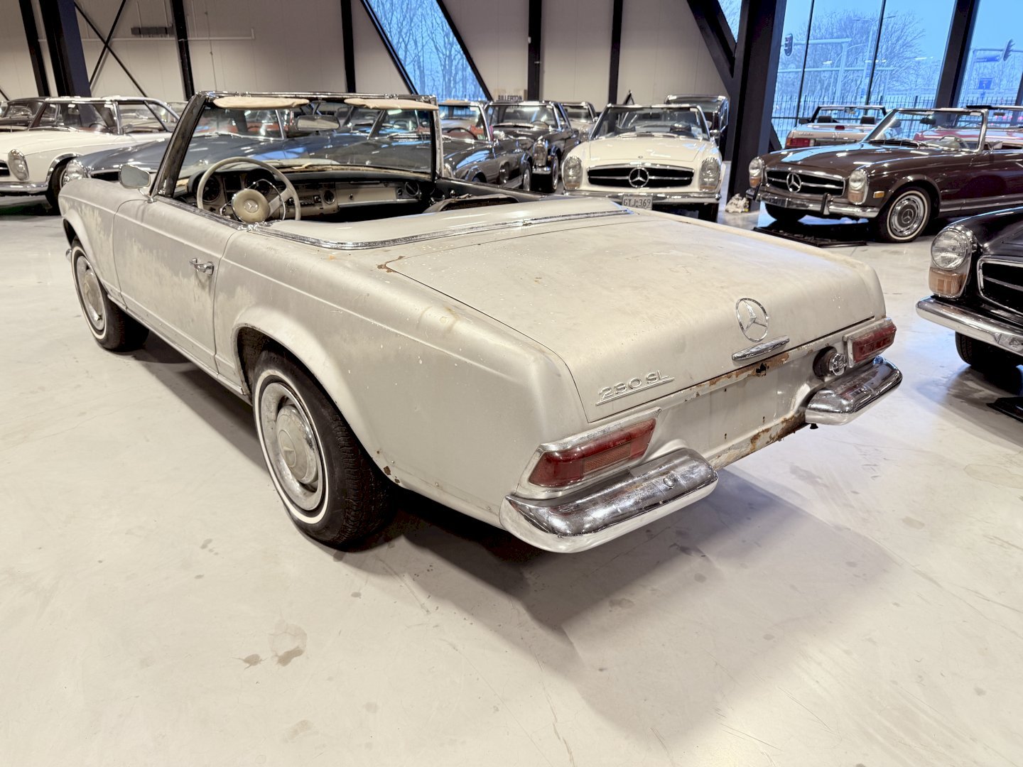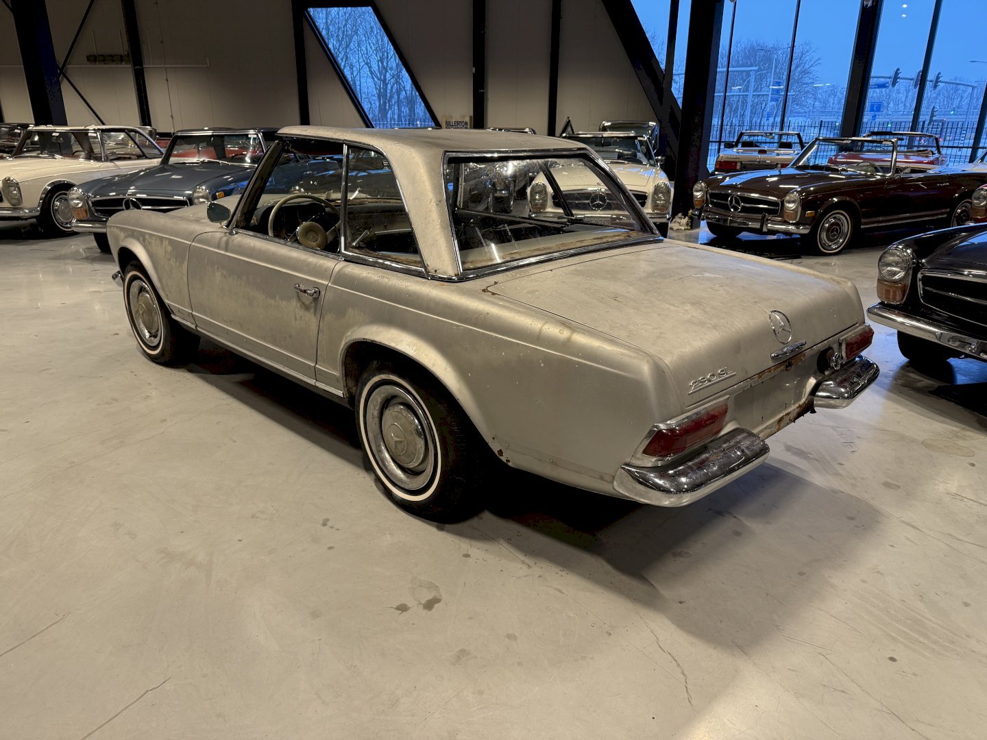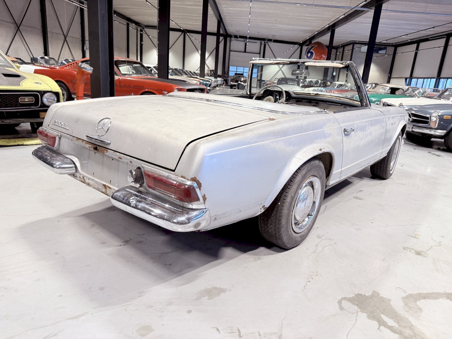 This is an Matching Number 230SL Pagoda automatic which has Hardtop and Soft-top, body wise not an wrong example, the car is missing some parts like a few chrome side mouldings.