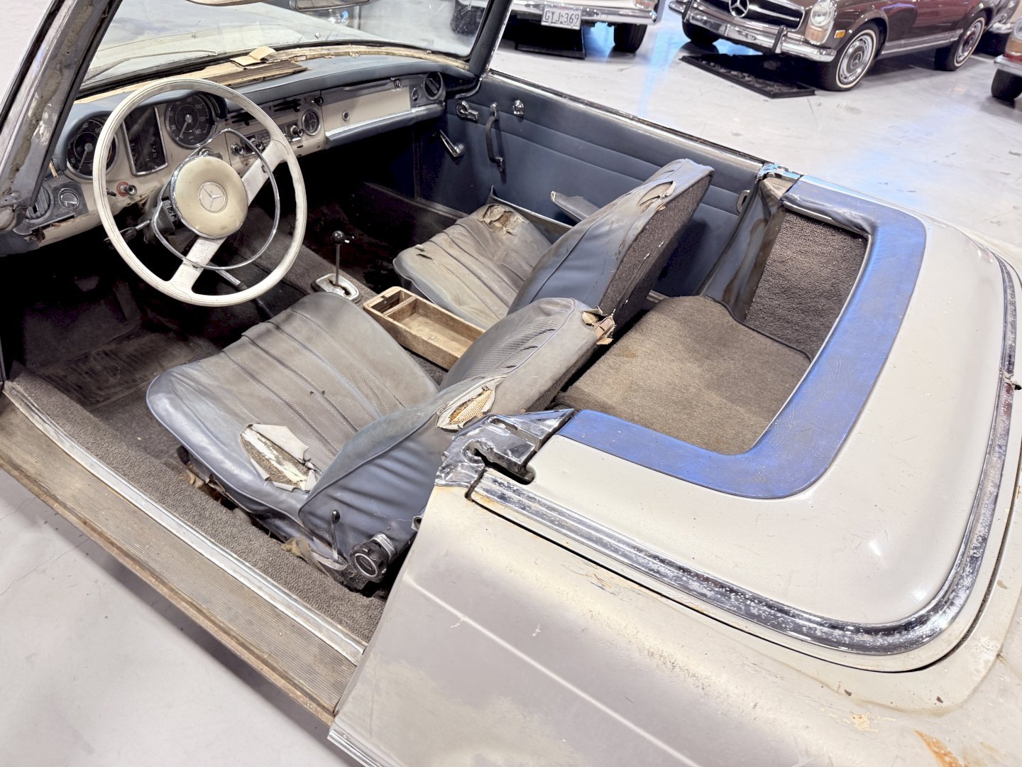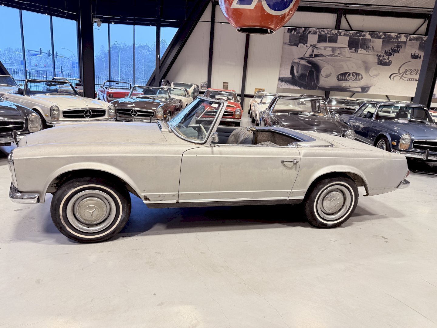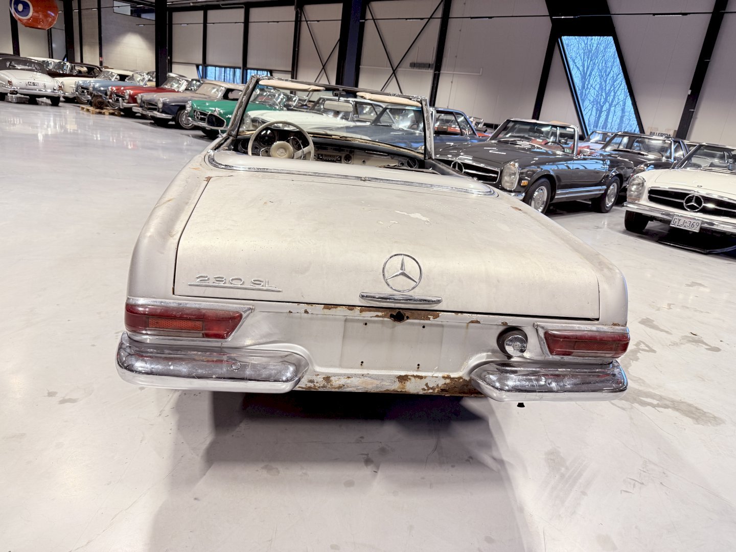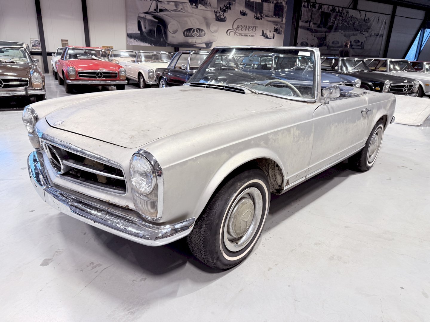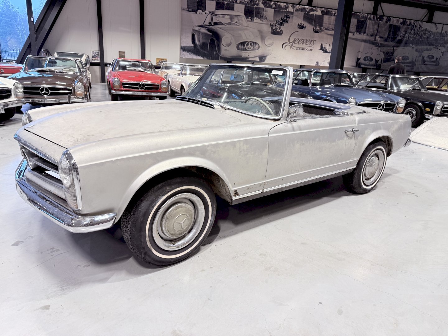 This is an Matching Number 230SL Pagoda automatic which has Hardtop and Soft-top, body wise not an wrong example, the car is missing some parts like a few chrome side mouldings.