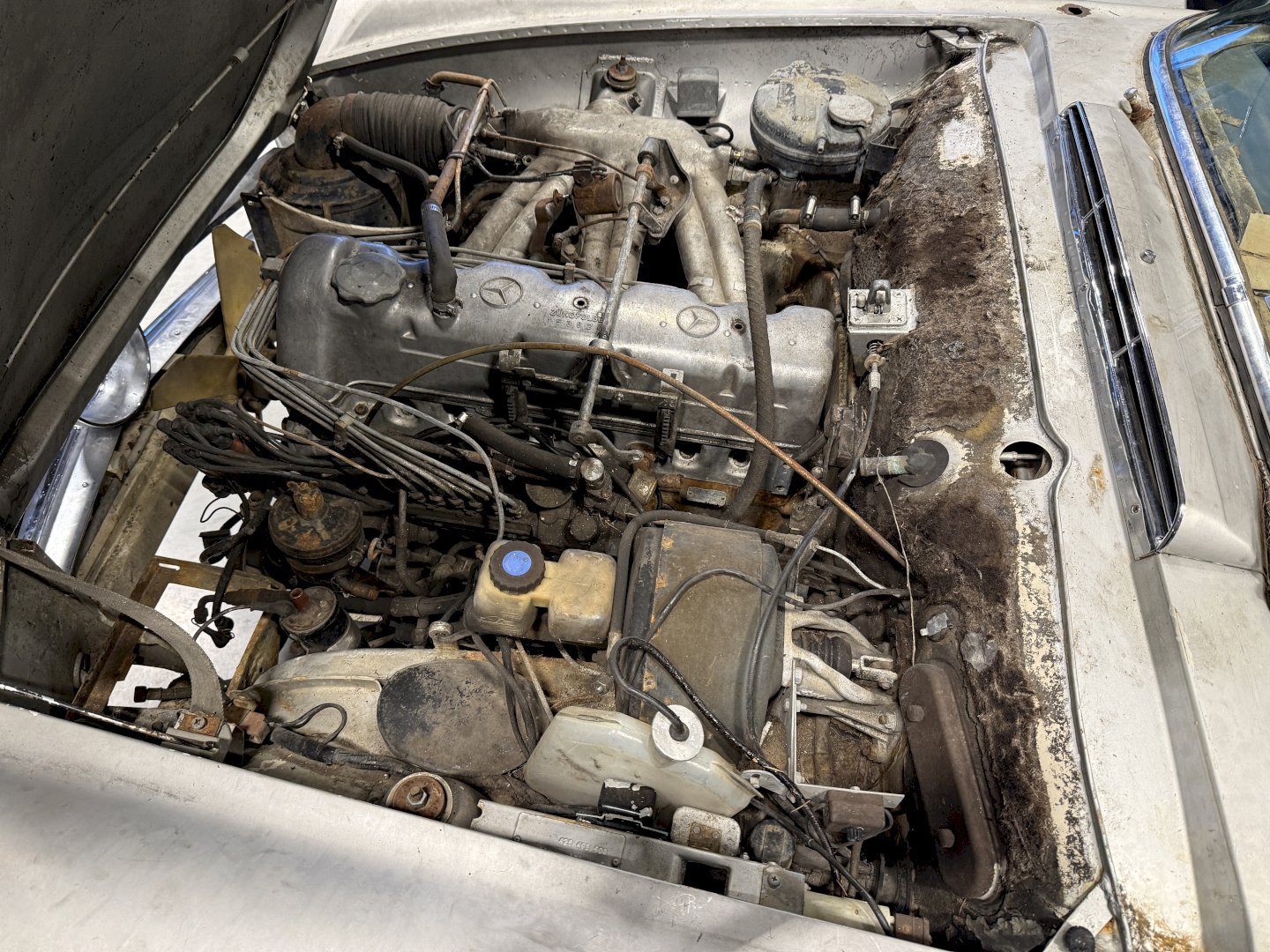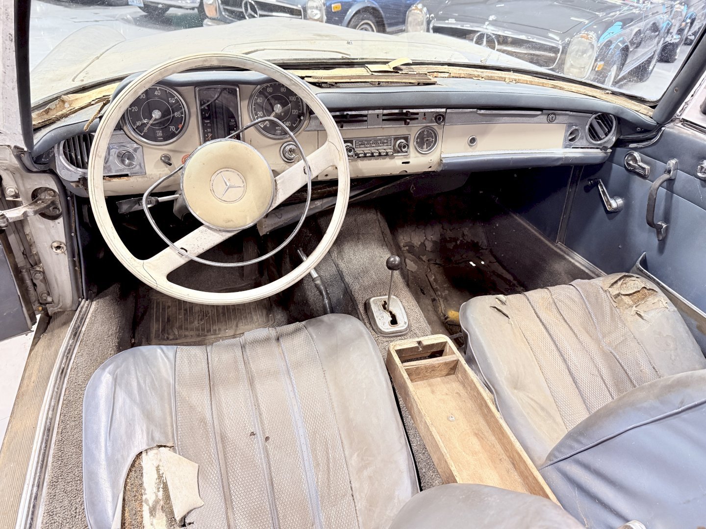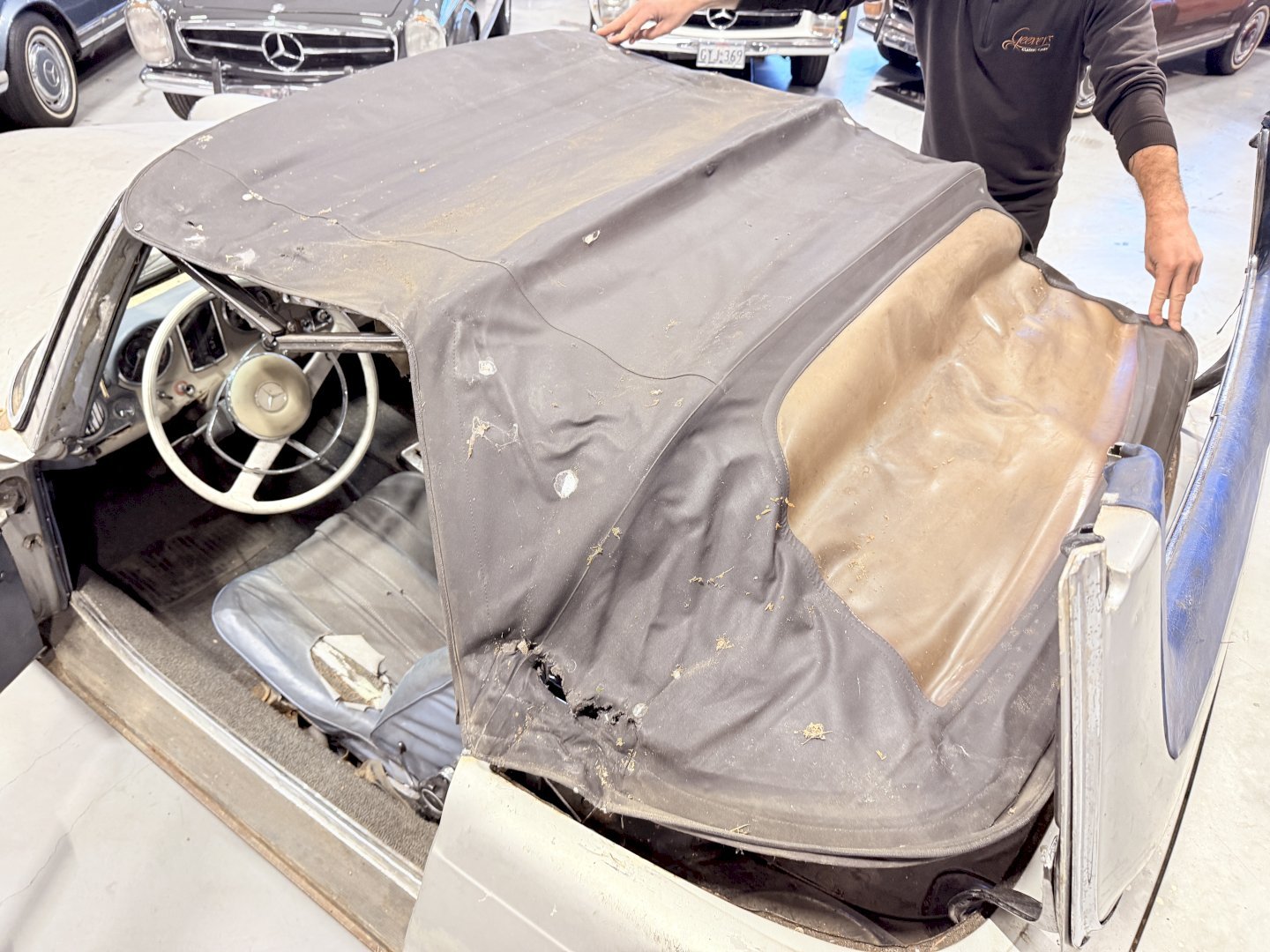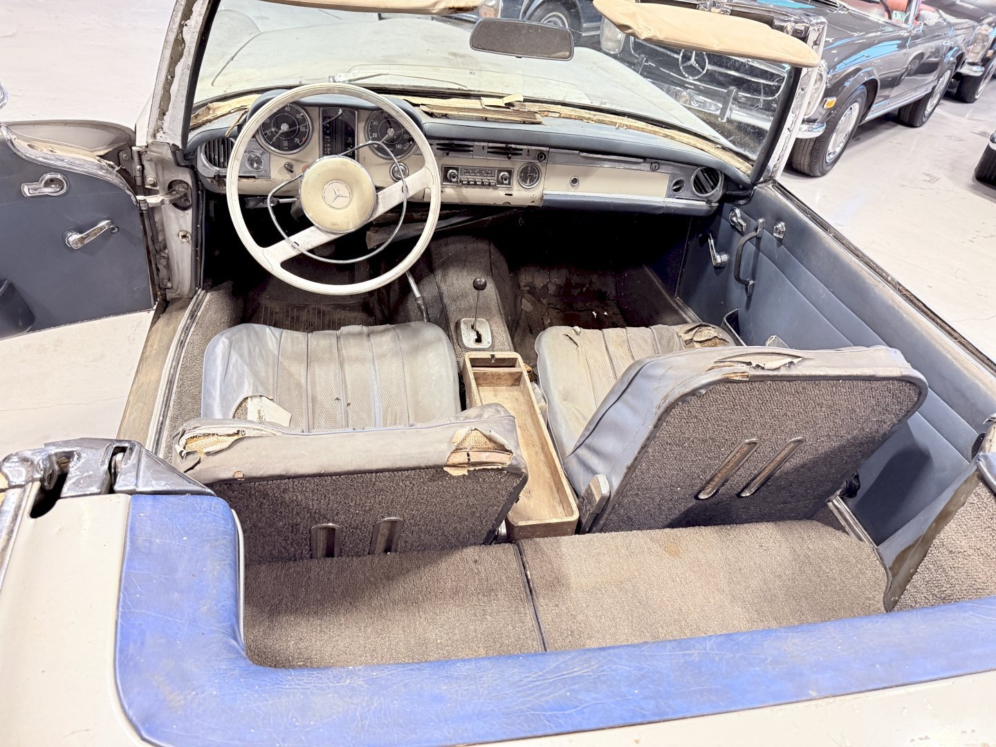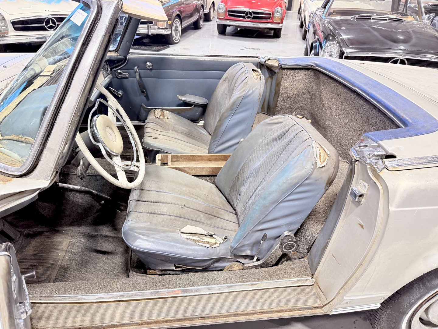This is an Matching Number 230SL Pagoda automatic which has Hardtop and Soft-top, body wise not an wrong example, the car is missing some parts like a few chrome side mouldings.