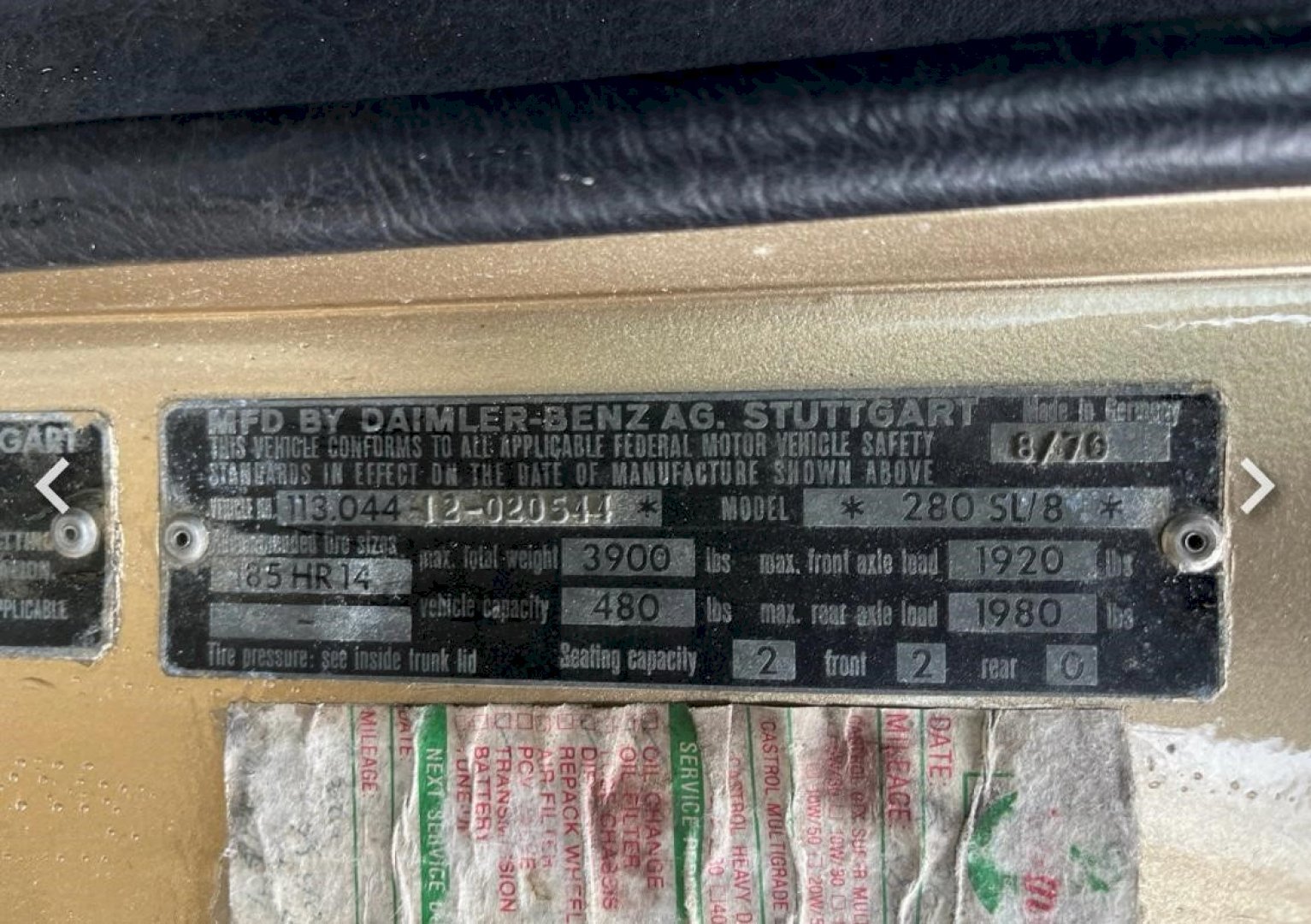 VIN # 11304412020544 (280SL1731)