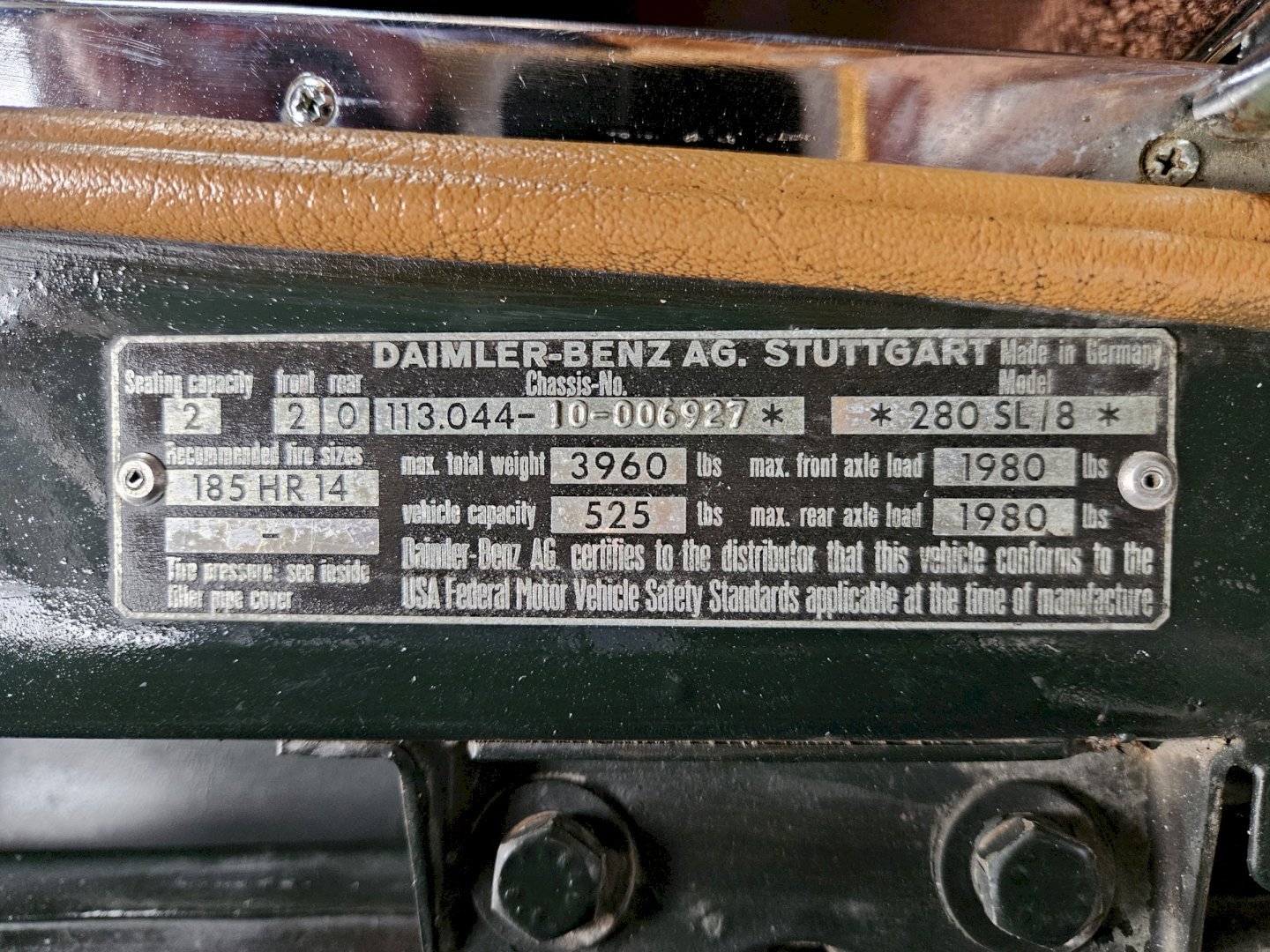 VIN # 11304410006927 (280SL1735)