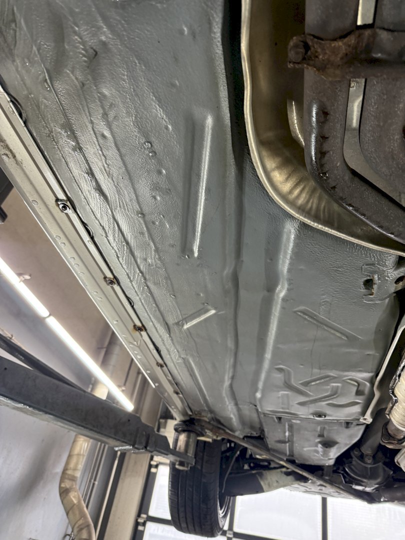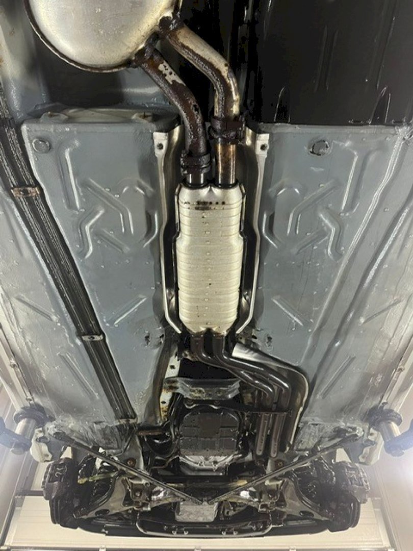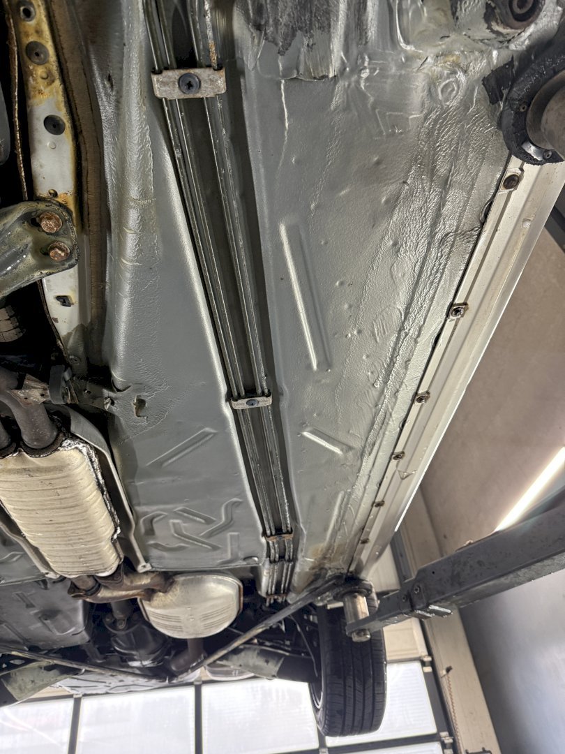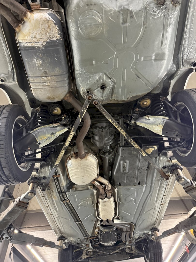 The body shows rust holes in certain areas, though notably the underside is in very nice, original condition, which is a strong positive for a convertible of this age. The car appears structurally sound underneath and has not been modified.