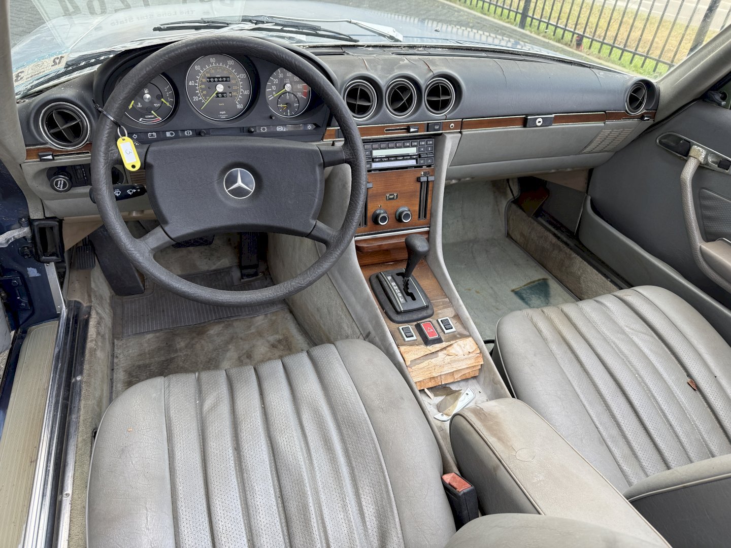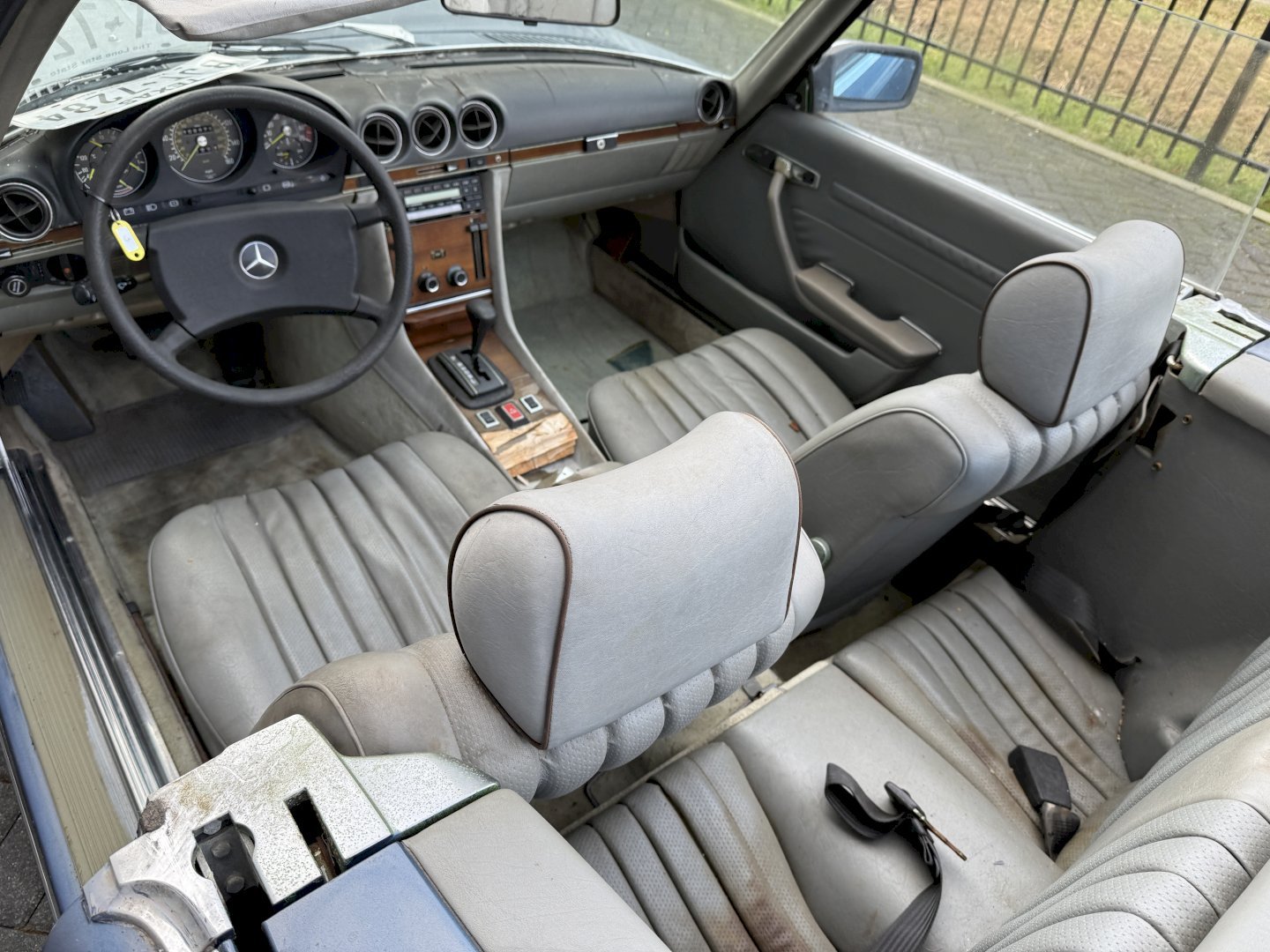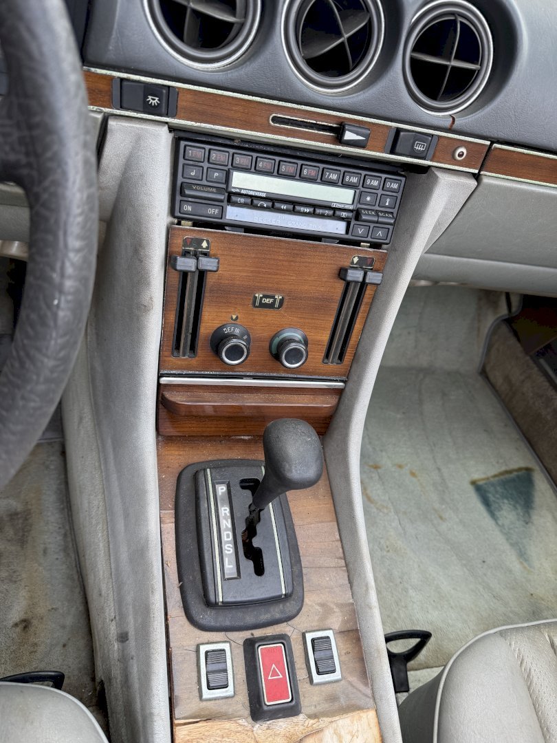 Betreft een 500SL automatic met 108.478 miles en heeft hardtop en soft-top en zelfs een achterbankje, betreft een auto voor restauratie echter met een heel goede originele basis, af fabriek in een mooie kleur combinatie, lakwerk is nog origineel echter moet vervangen worden, dashboard en het houtwerk heeft aandacht nodig.