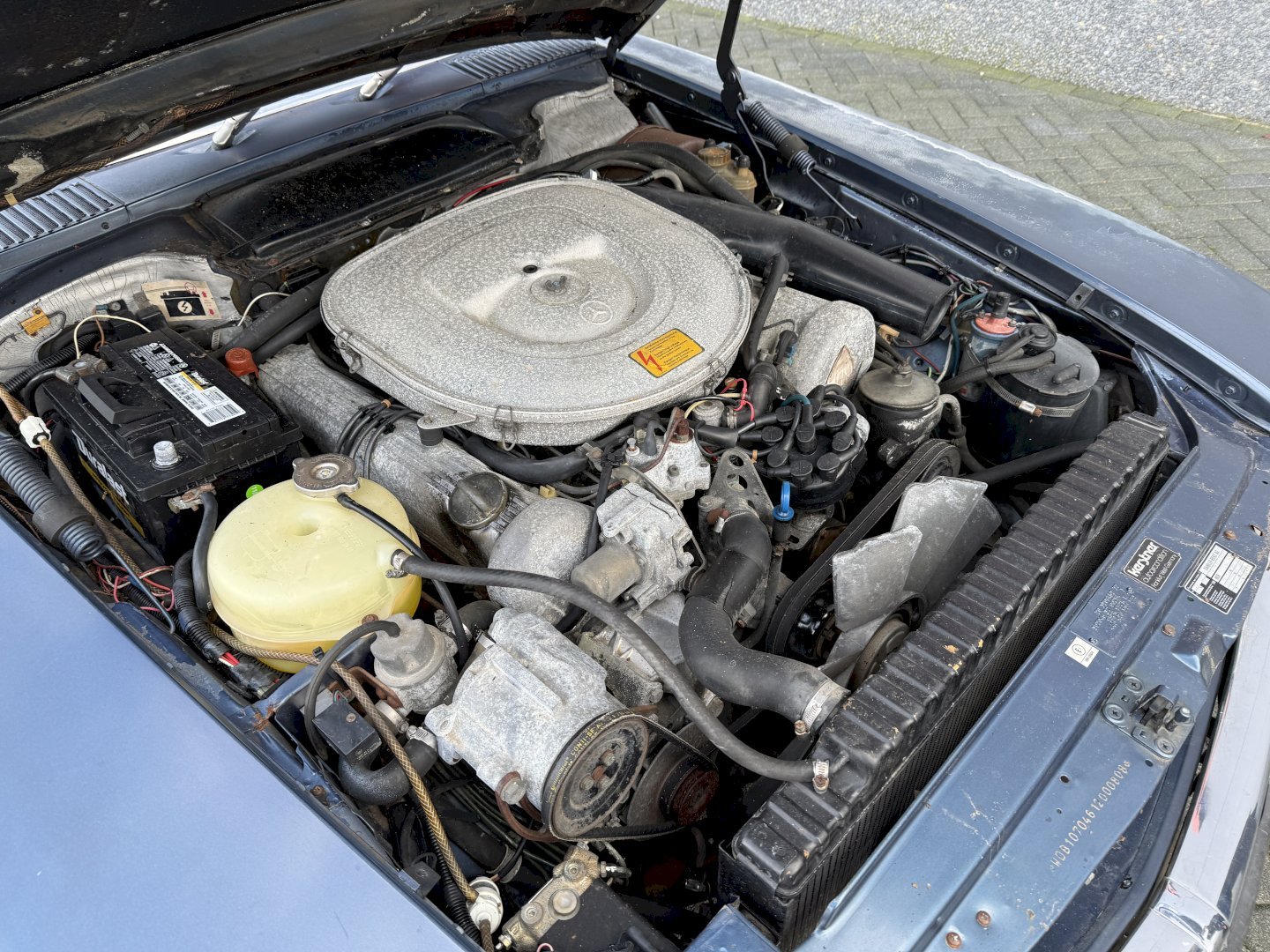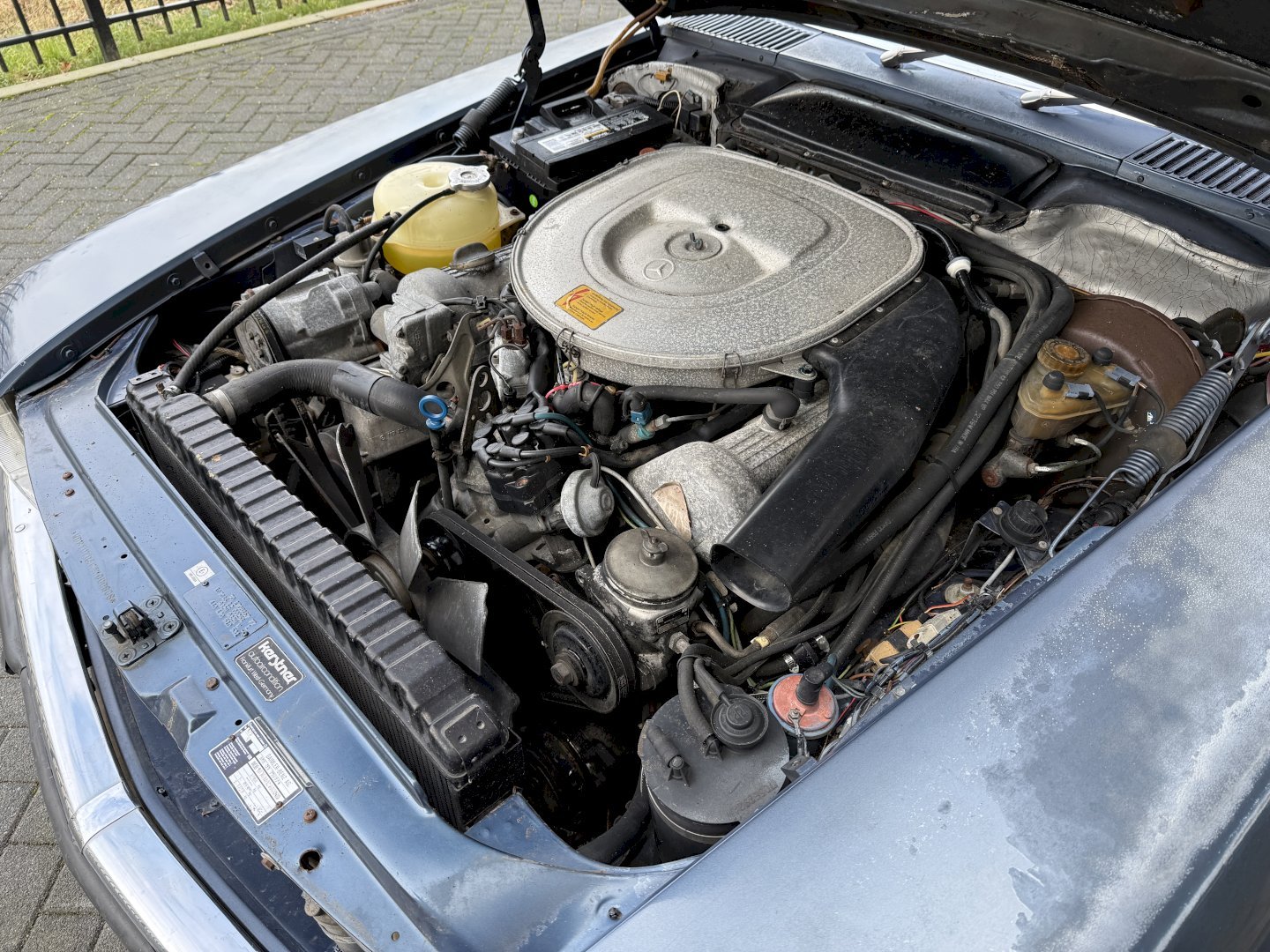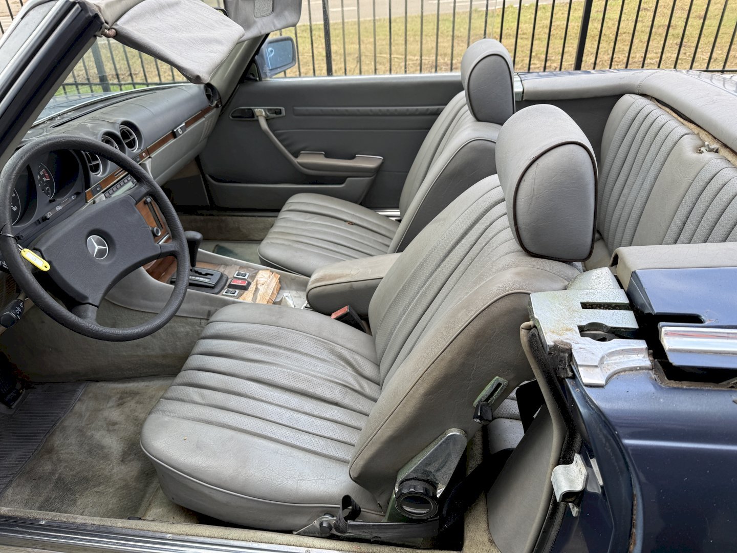 Betreft een 500SL automatic met 108.478 miles en heeft hardtop en soft-top en zelfs een achterbankje, betreft een auto voor restauratie echter met een heel goede originele basis, af fabriek in een mooie kleur combinatie, lakwerk is nog origineel echter moet vervangen worden, dashboard en het houtwerk heeft aandacht nodig.