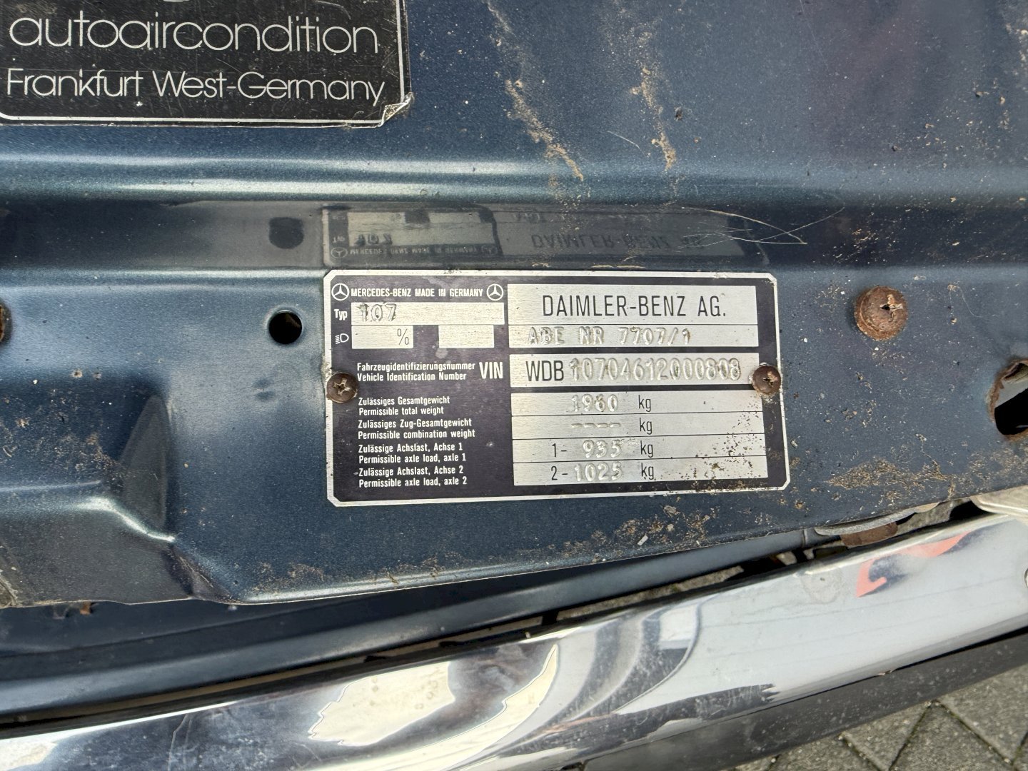 VIN # WDB10704612000808 (500SL51)