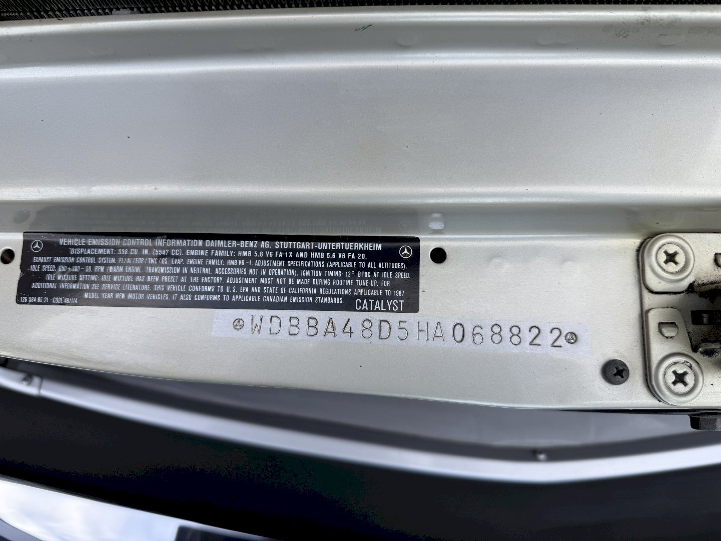 VIN # WDBBA48D5HA068822 (560SL315)