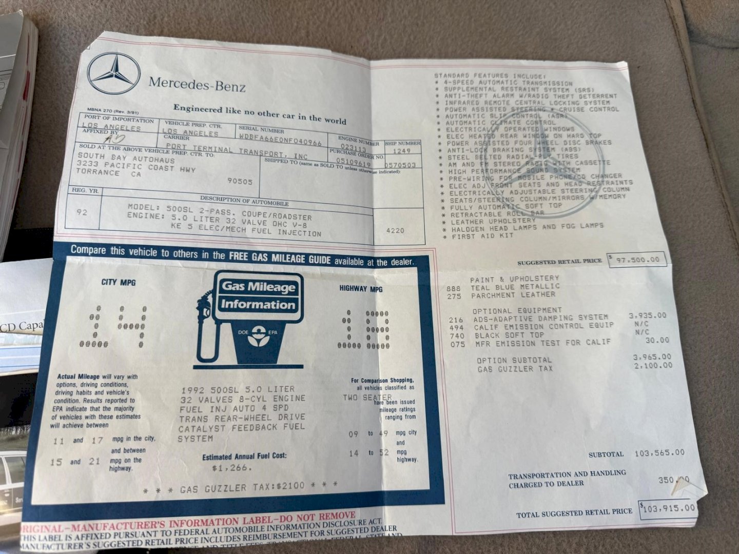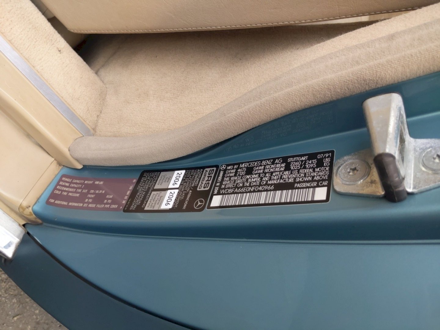VIN # WDBFA66E0NF040966 (500SL57)