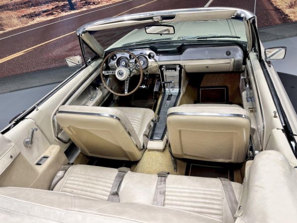 De lak en het interieur verkeren in zeer mooie staat en bieden een ideale balans tussen originaliteit en visuele aantrekkingskracht. Deze Mustang was vanaf nieuw rijk uitgerust, wat wijst op een compromisloze benadering van de oorspronkelijke eigenaar. Tot de fabrieksopties behoren onder meer een elektrisch bedienbare cabriokap, stuurbekrachtiging, rembekrachtiging met schijfremmen vóór, luxe interieurafwerking, luxe stuurwiel, middenconsole, extra koelpakket, GT-uitrusting en een correcte 9-inch achteras.