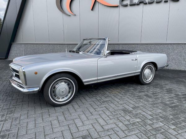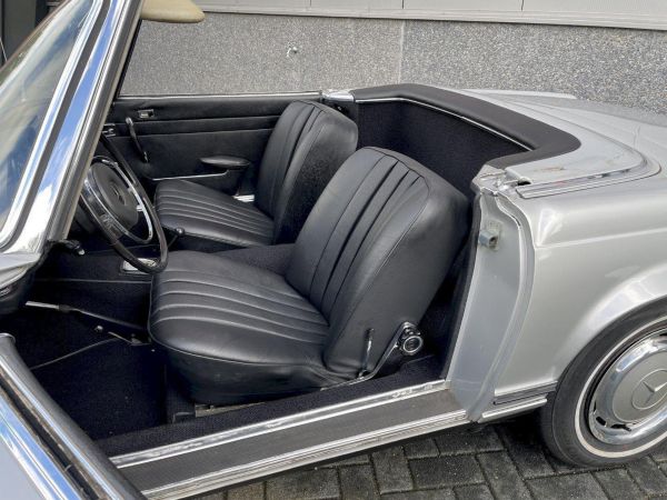 Hele leuke 280SL Pagode automatic Europese Versie, van origine in Italië uitgeleverd en daarna in de USA vertoefd, best een gezond exemplaar met een solide body, voorzien van Hardtop en Softtop met een zwart interieur, na een intensieve service beurt auto loopt en rijdt goed.